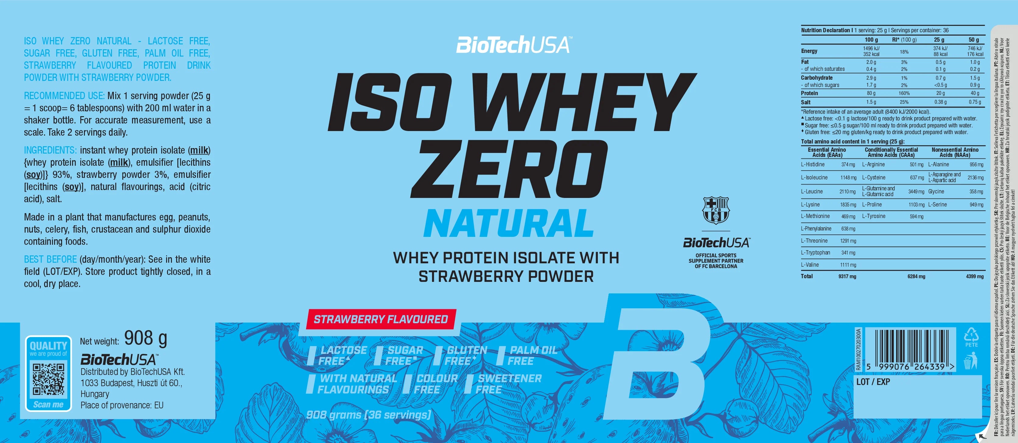 ISO WHEY ZERO NATURAL de BiotechUSA 908gr